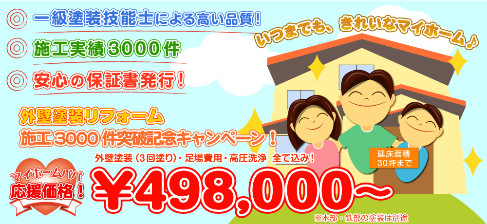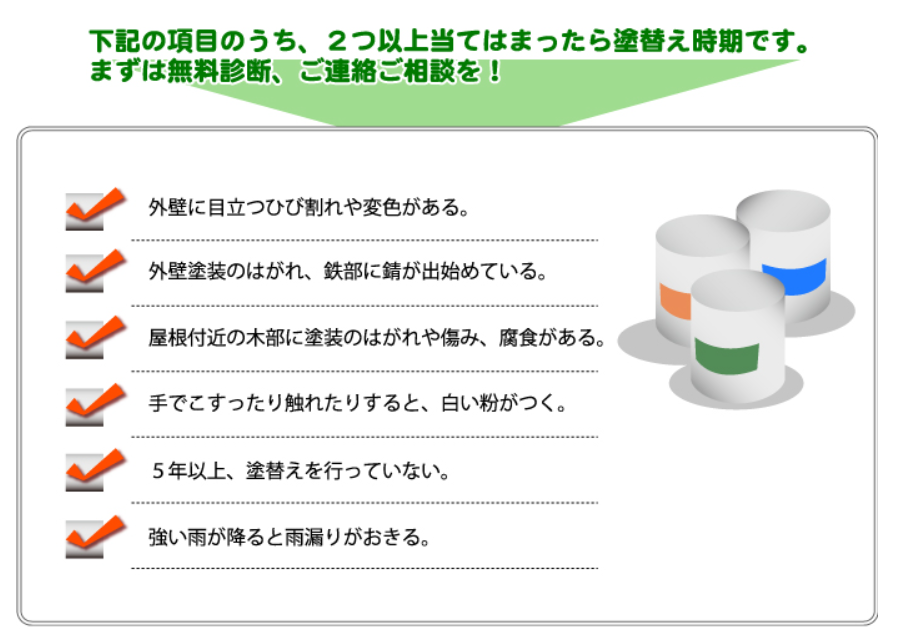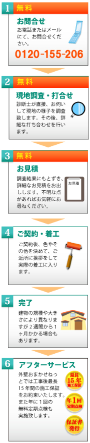 ホーム|会社概要|施工費用|施工の流れ|よくある質問|使用塗料の種類